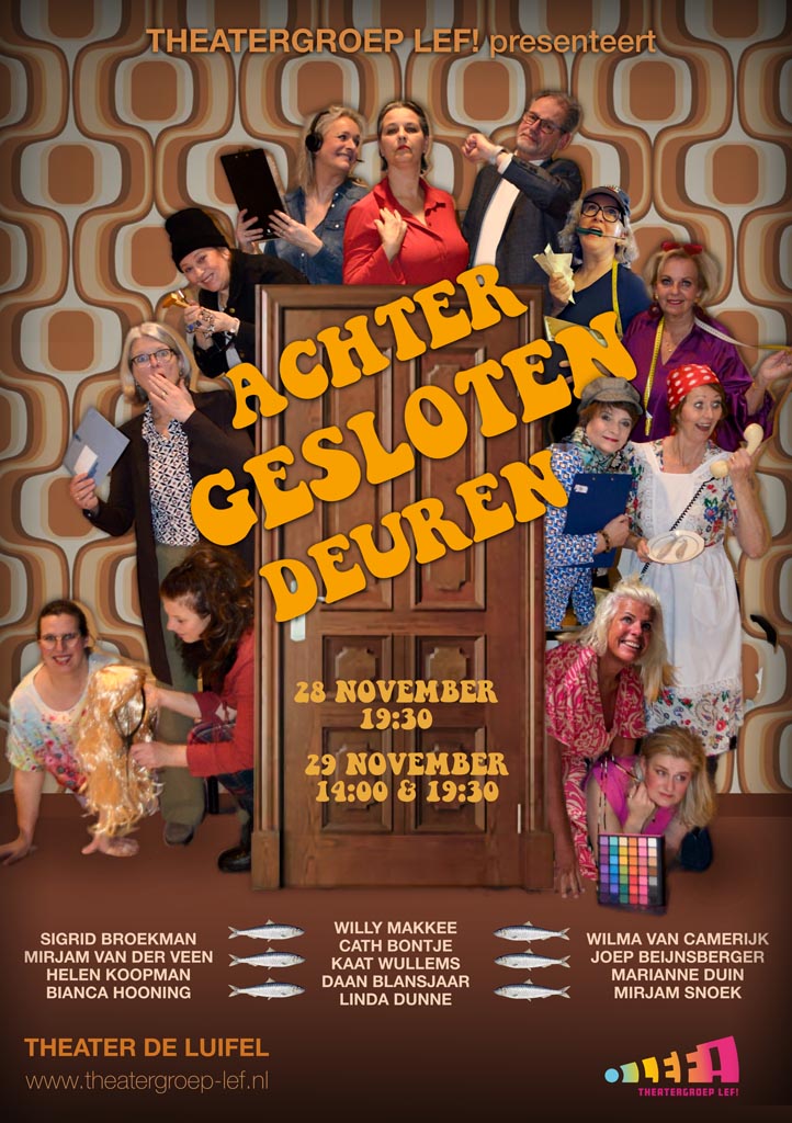 Theatergroep Lef! bestaat uit 14 enthousiaste amateurs in de leeftijd van 35-67 jaar. Wat ons bindt is niet alleen de passie voor zang, dans en acteren, maar ook het lef om dit vol overgave te tonen aan het publiek. We brengen jaarlijks een musical op de planken onder leiding van een ambitieus, enthousiast en professioneel artistiek team!